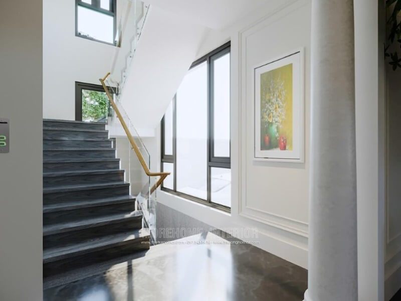Ngoài sản phẩm cầu thang gỗ bạn có thể lựa chọn sản phẩm cầu thang kính để thiết kế cho hành lang tầng của gia đình bạn