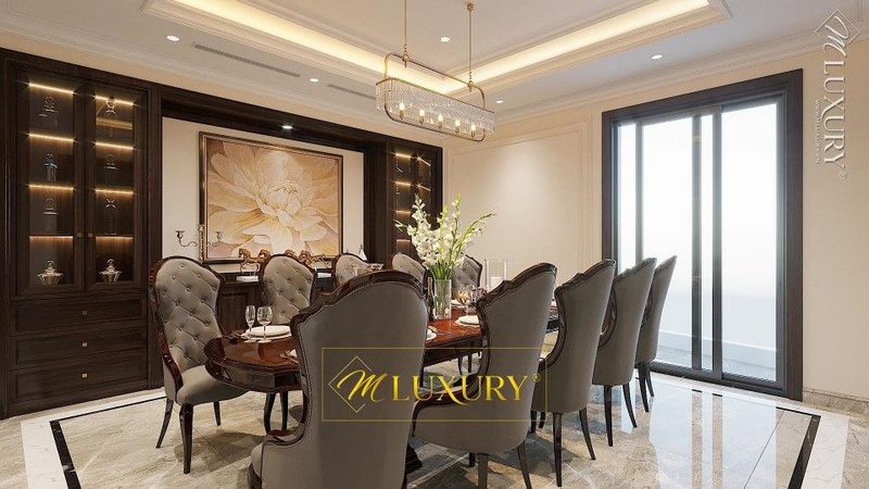Nội thất phòng ăn chung cư cao cấp ấn tượng và độc đáo với phong cách tân cổ điển