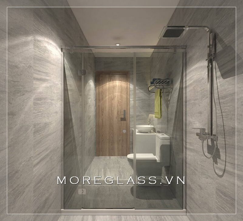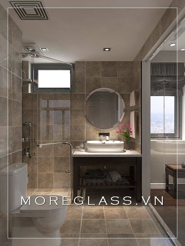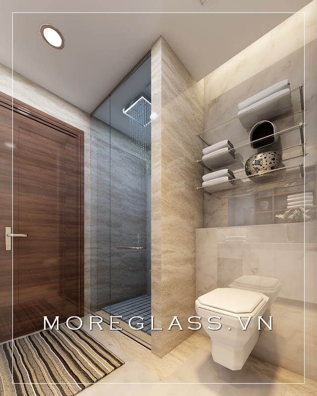 Mẫu thiết kế nhà tắm kính hiện đại với kính cường lực trong suốt mang vẻ đẹp sang trọng, tinh tế mà không gây cảm giác bí bách cho phòng tắm nhỏ