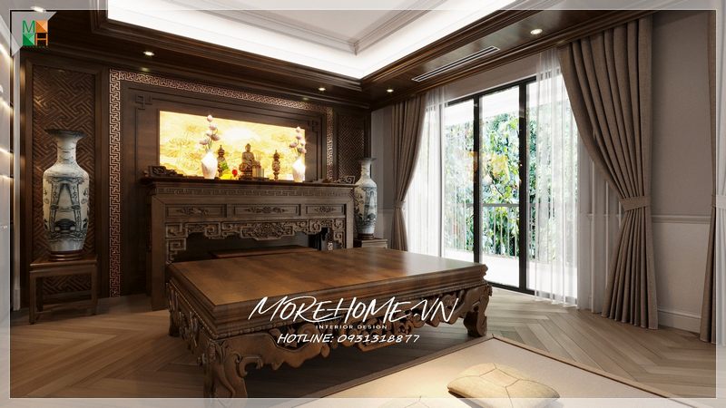 Cách bố trí bàn thờ phật gỗ hiện đại cho căn hộ chung cư khoa học tiện nghi