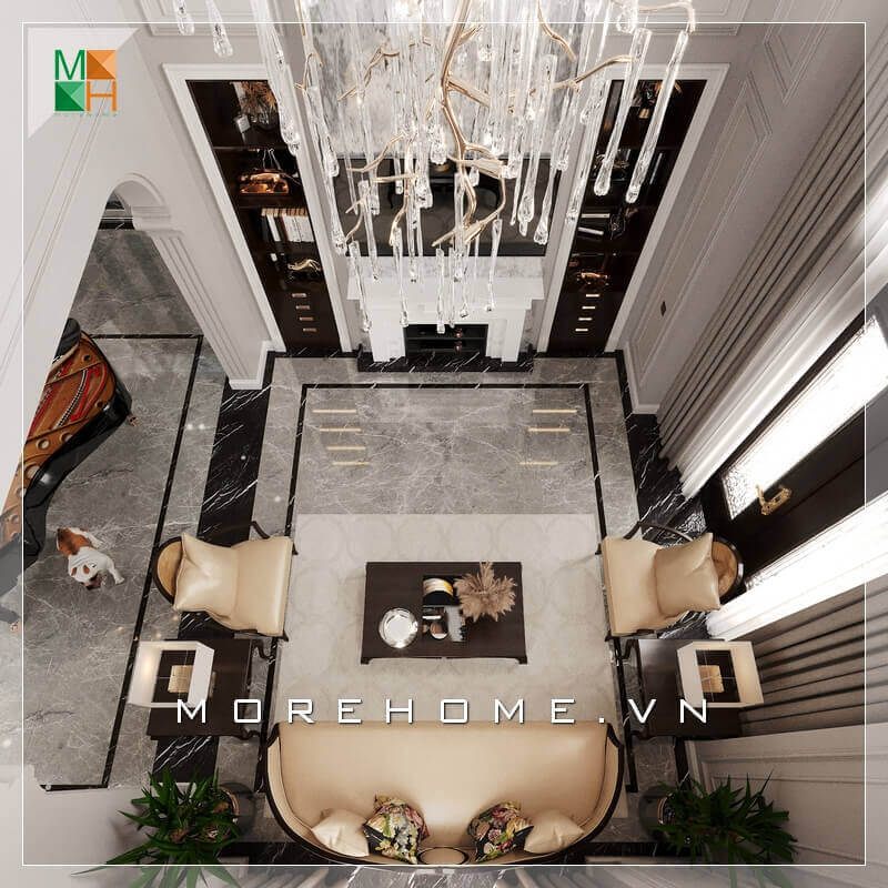 Trang trí nội thất phòng ăn của biệt thự Vinhomes The Harmony theo phong cách cao cấp với một bàn ăn đẹp tổng hợp cổ điển và hiện đại.