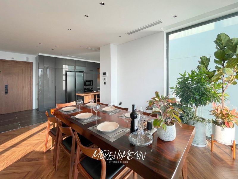 Những bức tường ngăn cách thường được thay thế bằng cửa kính lớn hoặc các vách ngăn nhẹ nhàng, giúp ánh sáng tự nhiên tràn ngập không gian. Điều này không chỉ mang lại cảm giác rộng rãi mà còn tạo ra một môi trường ấm cúng, lý tưởng cho những bữa tiệc gia đình hay những buổi gặp gỡ bạn bè.